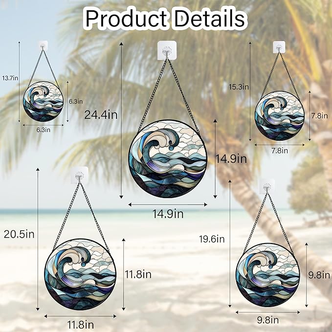 Stained Glass Window Hanging, Ocean Waves Sun Catchers Diamond Glass Panel Hangings Abstract Suncatcher Decor for Birthday for Women, Men, Wife, Aunt, and Mom 14.9x14.9 in