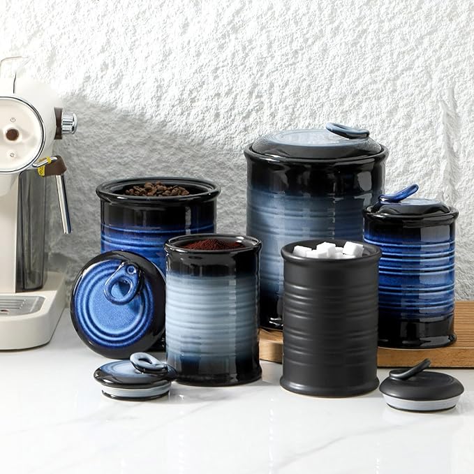 - [Food-Grade Ceramic] - Ceramic airtight lids not easy to deform like wood lids and won’t rust,canisters sets for the kitchen with silicone gasket creates an airtight and moisture proof environment to keep your food fresh and dry,the ceramic flour and sugar containers and lids are safe in dishwasher & microwave & oven & refrigerator.