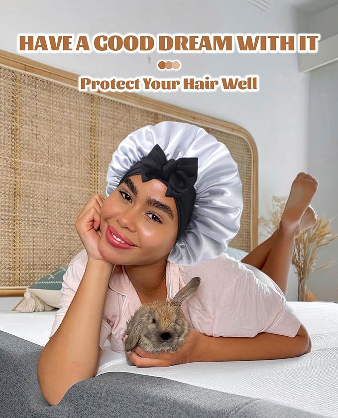- Satin Bonnet for Sleeping Versatile:Satin hair bonnet is not only suitable for sleeping, you can also use it to wash your face, bathe, cook, do SPA, tie your hair or clean your face while doing makeup, even do housework, do yoga and so on
