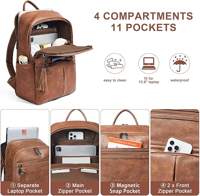 - Multifunctional Womens Computer Backpack: The leather computer backpack is exquisite and practical, waterproof, lightweight and soft, and and easy to clean. Fit for use as a nurse backpack, college backpack, work backpack, airport backpack, business backpack and daily use.The casual daypack backpack can be used as gift for her/him on Mother’s Day, Thanksgiving Day, Christmas Day, Graduation, Valentine's Day, Birthday, Anniversary, New Year and other festival.