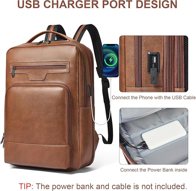- TRAVEL LAPTOP BACKPACK WITH USB PORT: The leather backpack for women has 2 built-in USB charging ports on the outside: Type-A and Type-C,and a built-in charging cable inside,providing you with a more convenient way to charge your phone and avoid missing information.Shrrie backpack laptop bag for women is an ideal choice for professionals who travel frequently