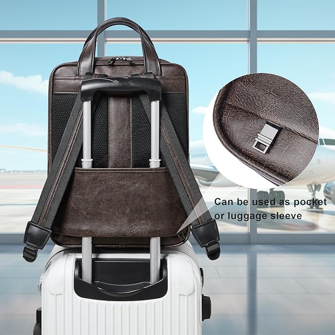 - Storage luggage straps Design:Leather backpack for men&women is designed for business trip,it helps you free your hands and back from the burden.Make your travel more convenient and enjoyable.Waterproof travel backpack fits under the seat also meets airline carry-on requirements.
