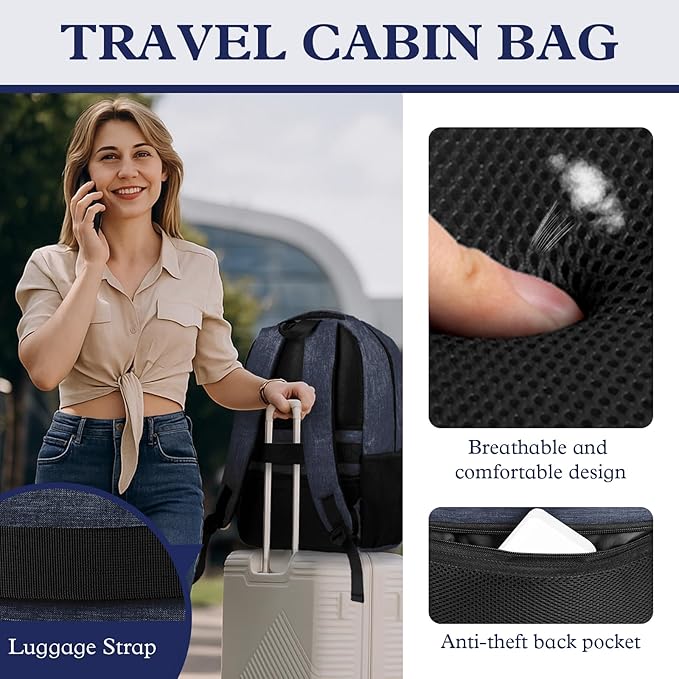 - ⚡FUNCTIONAL & SAFE: A luggage strap allows School computer backpack fit on luggage/suitcase, slide over the luggage upright handle tube for easier carrying. The Laptop backpack With a hidden anti theft pocket on the back protect your valuable items from thieves. This Laptop backpack is well made for international airplane travel and day trip as a travel gift for men.