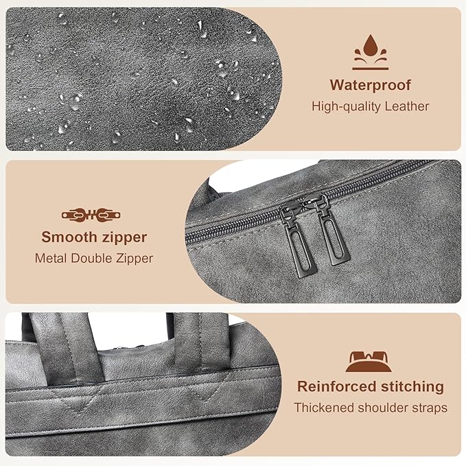 - 【Leather Laptop Backpack for Women】:Laptop backpacks made of soft and durable faux leather and fabric lining,thick shoulder straps,unique leather handles,no-slip zippers.The heavy-duty laptop backpack women features a total of 2 compartments and 11 pockets,making it easy to organize all work necessities,college supplies,and travel essentials,with dimensions of 16.5" x 15.7" x 7.8" and a weight of 2 lbs