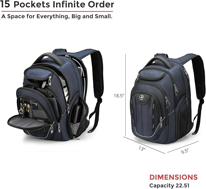 - TSA-FRIENDLY & MULTIPURPOSE: At checkpoint it unfolds to 90-180 degrees, allowing for quick & efficient navigation quickly through airport security. Exclusively designed for AIRPLANE TRAVEL. Serves as an everyday backpack,spacious college backpack for men, professional backpacks for laptop. Occasional international travel, outdoor camping backpack, hiking backpack with a large capacity with USB charging capability.