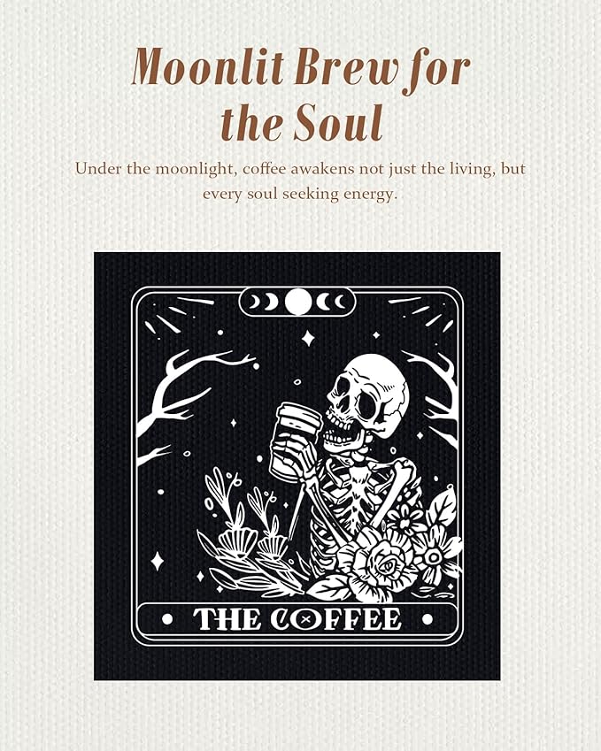 Canvas Tote Bag for Women – Aesthetic Canvas Bag with Zipper Cute Stylish Reusable Shoulder Totes for Shopping Work Daily Vacation, Coffee Skull