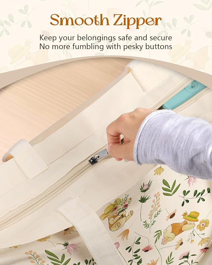 Canvas Tote Bag for Women – Aesthetic Canvas Bag with Zipper Cute Stylish Reusable Shoulder Totes for Shopping Work Daily Vacation, Floral Weini