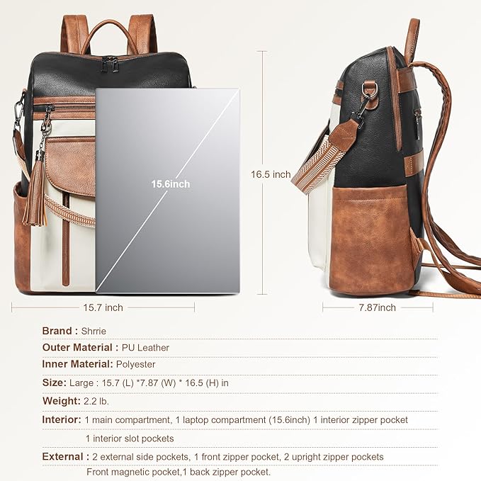 - 【Anti-Theft Backpack for Traveling on Airplane】: This back pack purses women fully complies with the size requirements for air travel,allowing you to take it with you as you travel around the world.Perfect size to fit under the seat on airplane and attaches to the raised handle of the suitcase for easy traveling.Shrrie 15.6-inch laptop backpack incorporates a discreet anti-theft zipper on the back,allowing you to safely keep essential items within reach