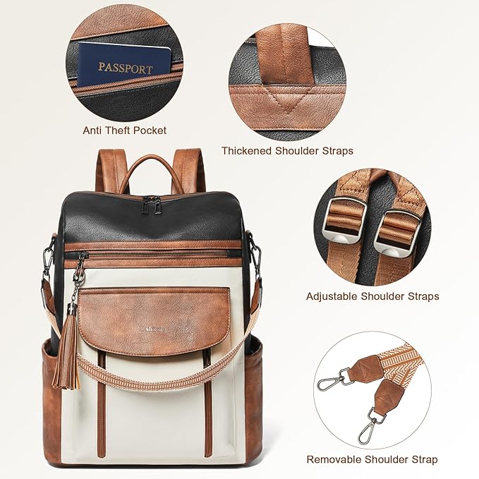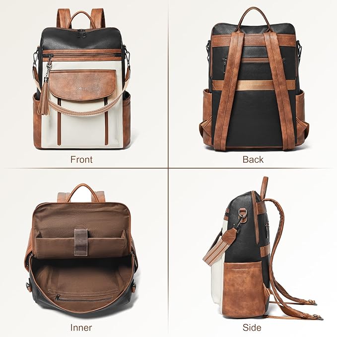 - 【Fashion Padded Computer Backpack Laptop Bag】:Work backpack Fit up to 15.6" laptops well.This purse backpack for women is padded on bottom.When traveling with this travel backpack and your suitcase,you can utilize the luggage strap attached to the leather laptop backpack for women,eliminating the need to carry it on your shoulders and effortlessly alleviating physical strain