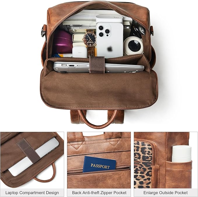 - 【High Quality Material】Backpack purse for women made of soft and durable faux leather and fabric lining,this leather backpack has a smooth and durable zipper closure,and each seam is reinforced for durability.The leather laptop backpacks features excellent water-resistant and moisture-proof properties, ensuring it remains in good condition even in humid environments