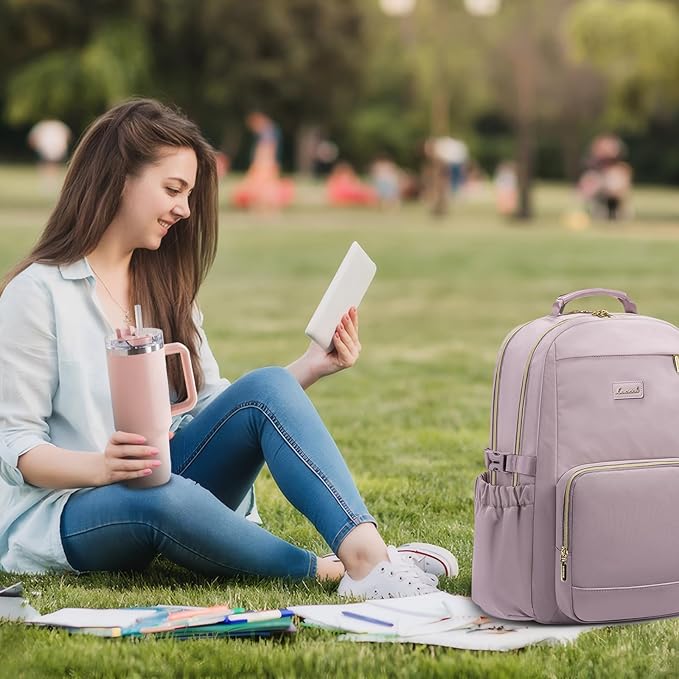 LOVEVOOK Laptop Backpack for Women with Pouch Pocket for Large Capacity Cup,18 Inch Laptop Computer Bag Travel Backpack Purse,Waterproof Work Business Backpack College Teacher Bags,Grayish Purple