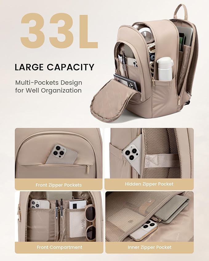 - 【Large Capacity&Ample Space】This laptop backpack has a capacity of up to 33L for 17.3" laptop, perfect for women who need a backpack for work. The women's backpack is fit for holding daily supplies such as A4 folders,books, chargers, clothing, ideal for young women and professionals.