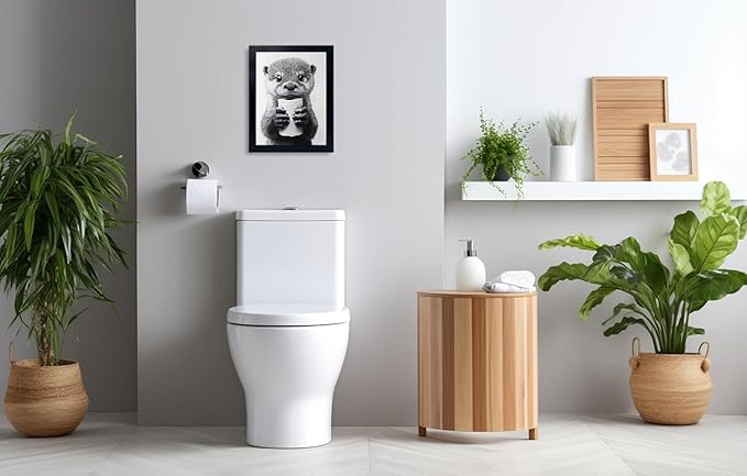Minimalist bathroom wall decor, Otter wall art for grabbing toilet paper, hilarious, funny bathroom animal art, black and white canvas print painting can be hung directly - frame -11 "x 14"