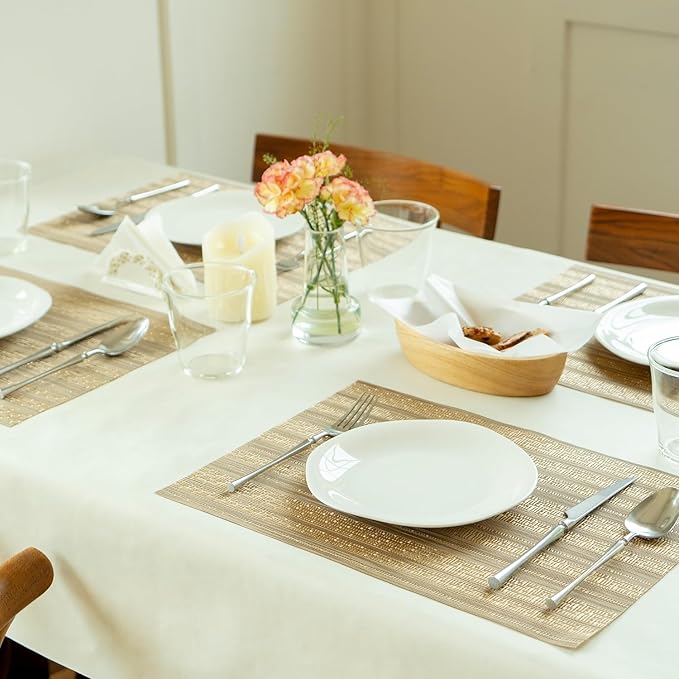 - Durable & High-Quality Placemats: Crafted from premium 70% PVC and 30% Polyester, these placemats for dining table are precision-woven for exceptional durability. Designed to withstand daily use, they are heat-resistant, water and oil proof, long-lasting, non-slip, and easy to clean, making them a practical and stylish addition to any dining setup.