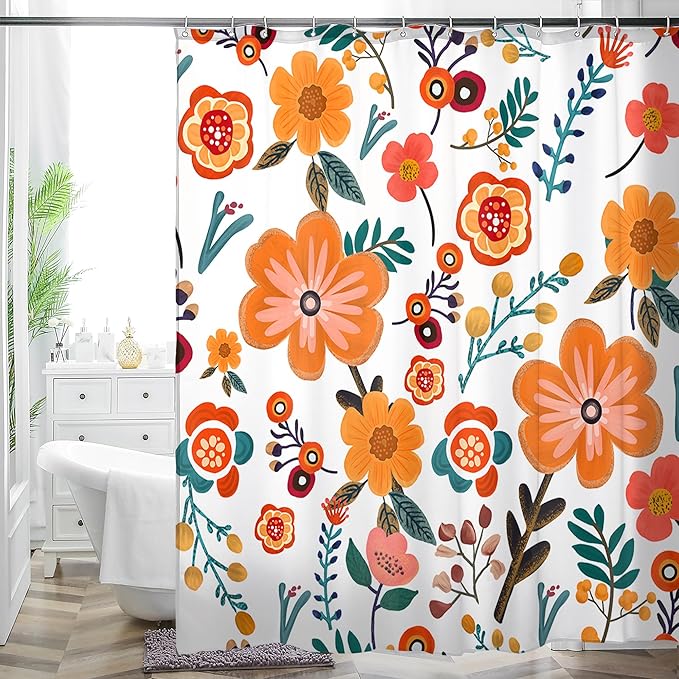 - [EASY INSTALL + ROD FLEXIBILITY]: Hassle-free setup in seconds! Includes 12 hooks. Works flawlessly with straight or curved rods - no special hardware needed. Transform your bathroom instantly with its vibrant, eye-catching design.