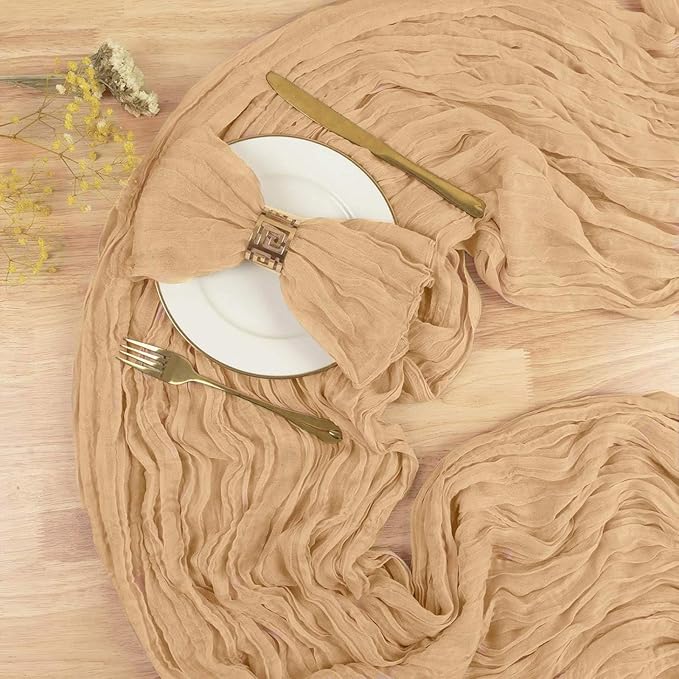 - Washing and care: These cheesecloth table runner are recommended to be hand washed in cold water, or machine washed in a laundry bag on gentle cycle; To maintain the wrinkle texture, please do not iron or use hot water, lay flat or hang to dry, which is more conducive to long-term maintenance these forms.