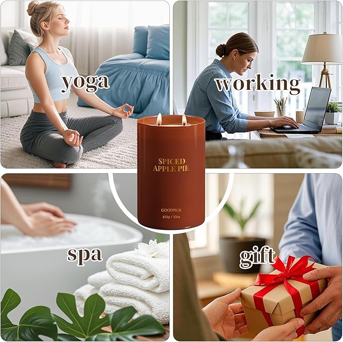 Goodpick Candle Spiced Apple Pie, Fall Candles for Home Scented, 22oz Soy Wax, Warm Cinnamon 120hrs, Cozy Baking Gift