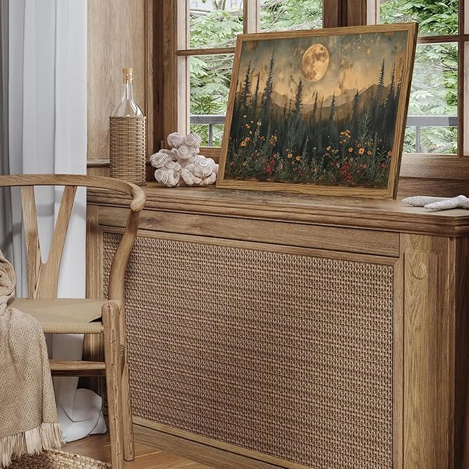 - Vintage Moon Forest Wall Art:This vintage jungle decor artwork features a full moon over a tranquil woodland scene. Ideal for adding a rustic, dark academia touch to bedrooms, living rooms, or cozy reading nooks