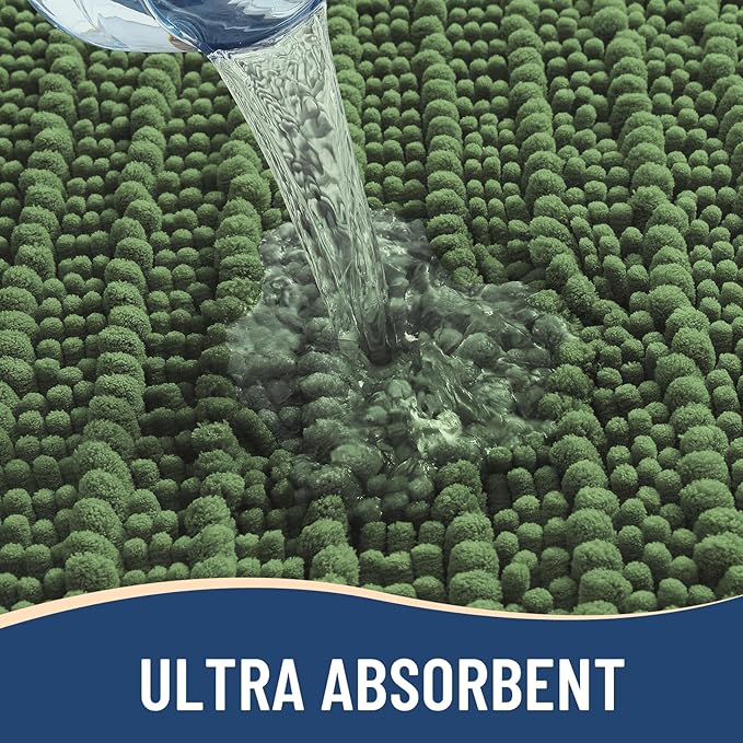Arotive Luxury Chenille Bathroom Rug Mat, Extra Soft Thick Absorbent Shaggy Bath Rugs, Non-Slip Machine Wash Dry, Plush Bath Mats for Bathroom, Shower and Tub, 30x17, Olive Green