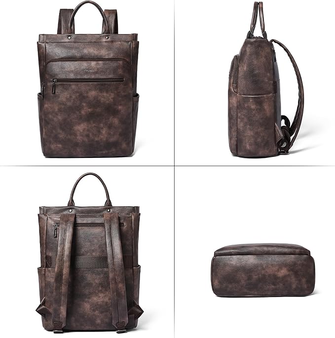- High Quality Work Backpack for Women : Mroede leather laptop backpack made from high quality vegan pu leather and smooth zipper,and each seam is reinforced for durability. This leather backpack purse only can water-resistant against light rain and splashes. Please note: Due to the backpack is made by pu leather if you find it has a little odor is normal,but you needn't worry about it just put the backpack in a ventlated place for 2-3 days it will be gradually disappeared.