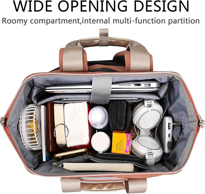 - 【USB charging port】The laptop backpack for women has a built-in USB charging port design and a mobile power pocket, which is very convenient to charge your electronic devices by connecting your own mobile power.When you carry a backpack on the road, it can conveniently charge your mobile phone (excluding power bank)