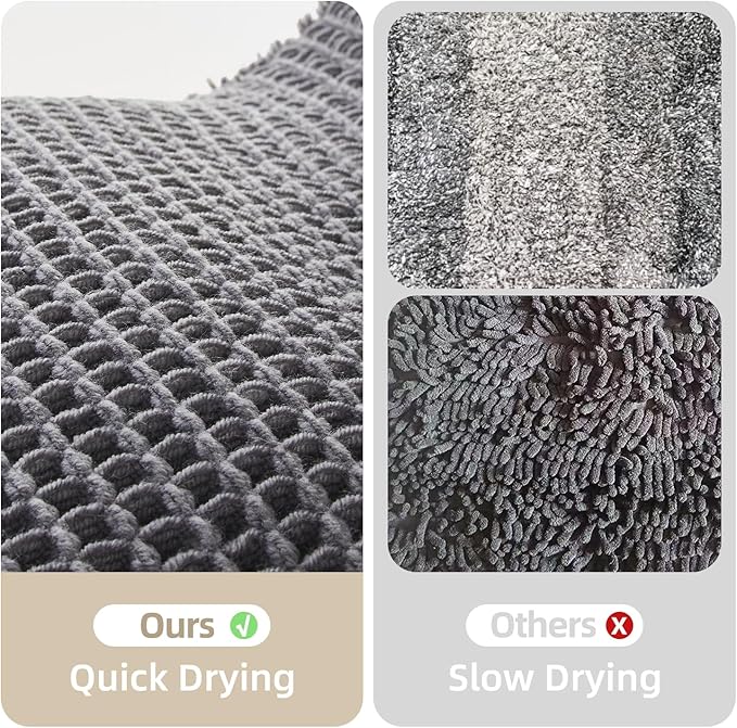 - Super Absorbent and Quick Dry: These waffle bath mats are moisture magnets! Their unique weave quickly absorbs water, keeping your bathroom dry and comfy