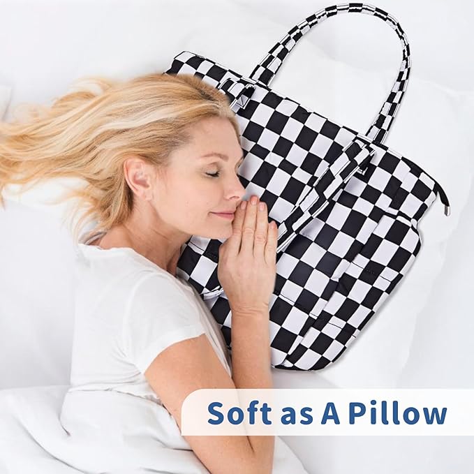 TOPDesign Puffer Tote Bag for Women, Lightweight Puffy Handbag with Compartments, Quilted Shoulder Bag for Work, Travel, Gym