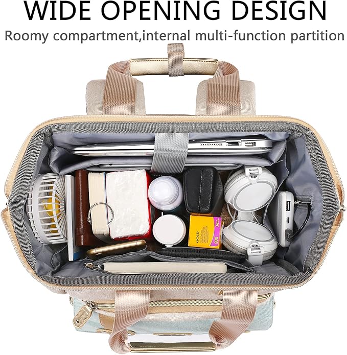 - [Multifunction & Multi-Scenario Backpacks]:The woman backpack is made of water resistant fabric, and the zippers are made of tough metal. The main compartment is designed with a large upward opening, which allows you to see what's inside at a glance, making it easy to organize and arrange your luggage. This laptop backpack women is not only suitable for office workers, school girls,nurses to carry, but also very suitable for daily life, outdoor activities and traveling