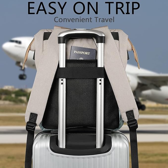 - [RFID Anti-Theft & Luggage Retention Strap]:The back of the womans backpack for work has an RFID Intercept Anti-theft pocket to protect your personal valuables from theft. (e.g. passport, credit cards, keys). There is also a luggage strap on the back to attach to the handle of your suitcase, making your long distance travel easy and secure