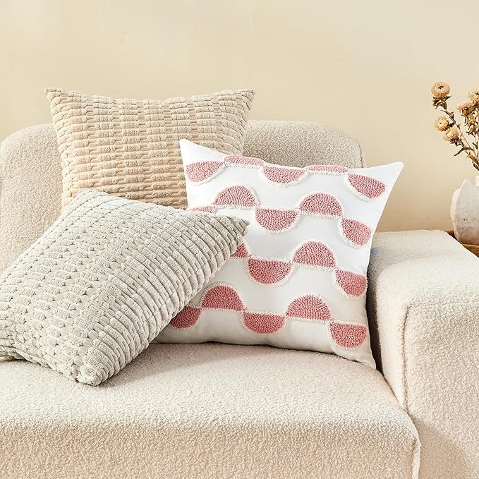 - 【FABRIC AND SIZE】The boho couch pillow cover is made of 100% polyester.Measures 18x18 inches.Exquisite workmanship enables tufting part dense soft and aesthetic.The 3D effect with the tufting technic makes these abstract pillow covers so distinctive.