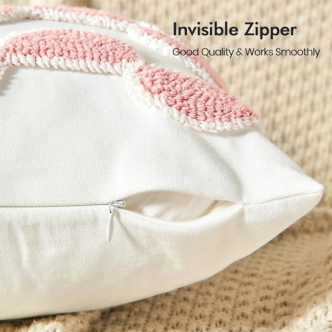 lifein 18x18 Pillow Covers-Throw Pillow Cover,Tufted Boho Jacquard Pillow Covers,Farmhouse Decorative Pillow Cover,Pillow Cases for Gift,Couch,Sofa,Bed,Chair,Living Room,Home Decor(18x18inch)
