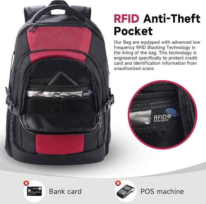 - 【RFID DATA PROTECTION】: Travel with peace of mind. Work backpack for men with an integrated RFID protection compartment, which helps to protect your sensitive personal data (such as credit cards, passports, and driver's licenses) from being accessed by scanners. With a hidden anti-theft pocket on the back, protect your valuable items from thieves. Well-made for international airplane travel and a day trip as a travel present for men