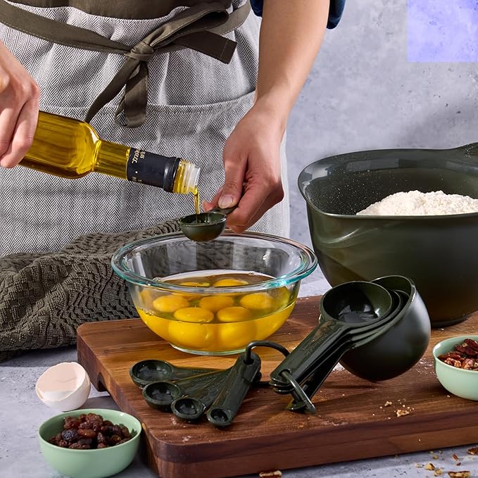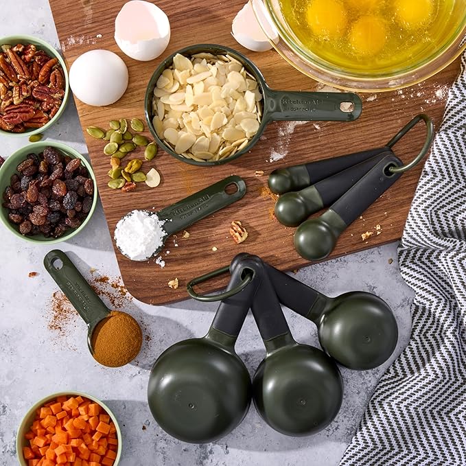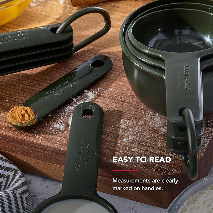 KitchenAid Plastic Measuring Cups and Spoon Set, Set of 9, /4, 1/2, 1/3, and 1 cup sizes, and 1 tbsp, 1/2 tbsp, 1 tsp, 1/2 tsp and 1/4 tsp, Evergreen