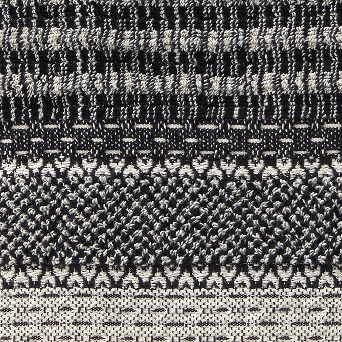 SKL Home Lewis 100% Cotton Premium 2-Piece Hand Towel Set, 600 GSM, Reversible Jacquard, Soft & Absorbent, Decorative for Bath/Kitchen/Bar & Gift, Black