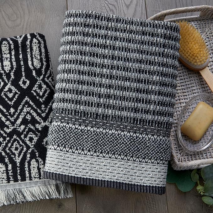 SKL Home Lewis 100% Cotton Premium Bath Towel, 600 GSM, Soft & Absorbent, Reversible Jacquard, Black