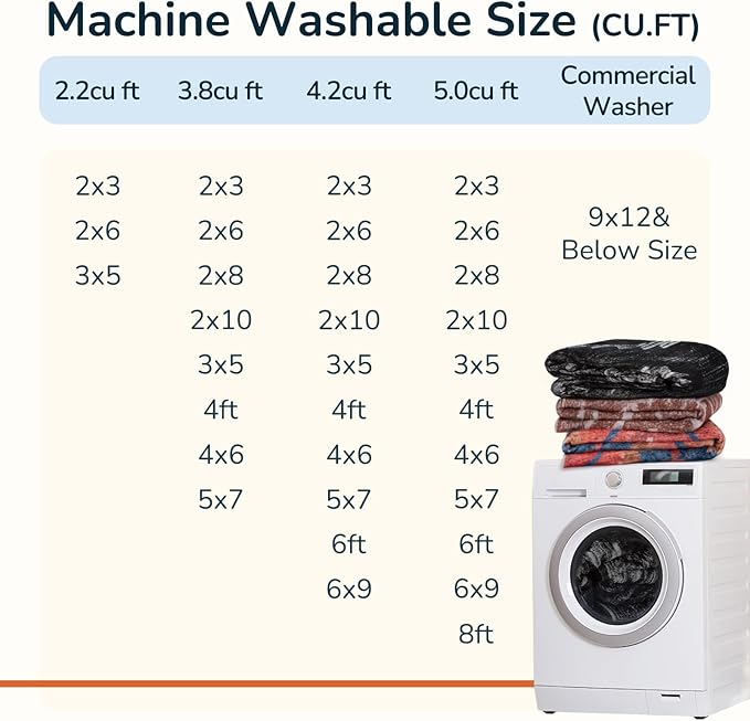 - Machine Washable: The rug is machine washable, machine wash or hand wash are all available. We suggest to wash it in cold water. Vacuum or robot vacuum cleaner are all recommend. You can spot clean the rug with a rag for small stain. No bleach and no high temperature ironing.