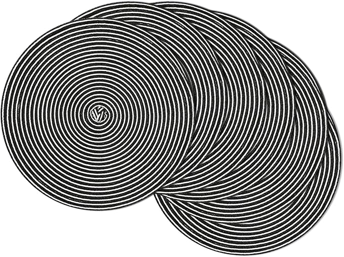 SHACOS 15 inch Round Braided Placemats Set of 6 Non Slip Washable Fabric Kitchen Table Place Mats Heat Resistant Table Mats for Home Wedding Party, Black White