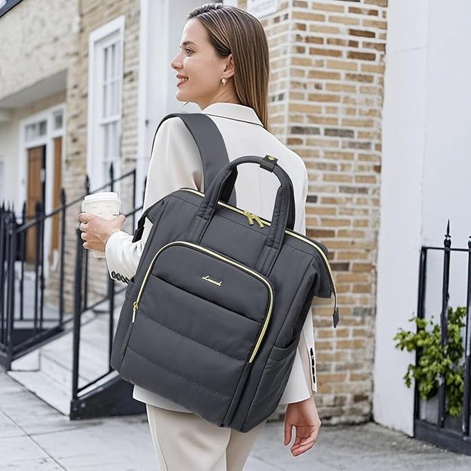 LOVEVOOK Laptop Backpack Women 15.6 inch,Lightweight Puffer Travel Backpack for Women,Quilted Laptop Bag Computer Work Teacher Nurse Backpack,Womens Backpack Purse for College Business,Dark Grey