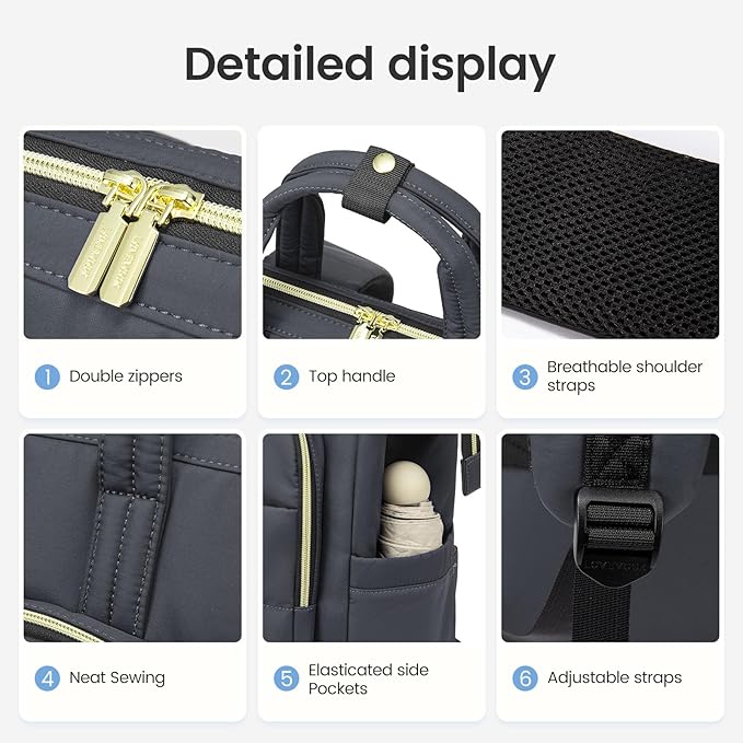 - 💻【Padded Laptop Backpack Women Computer Bags】: The built-in padded laptop compartment with cushioned cotton sewn around fits up to 15.6" laptop,this backpack purse for women comes with a elastic strap can offer the optimal protection for your laptop,tablet slot fits 13.3" laptop, 12.9" iPad. Great idea backpack for anyone with multiple electronic devices.