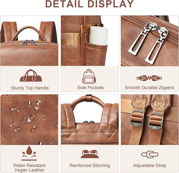 - Leather Backpack for Women: This womens backpack for work is made of high-quality PU vegan leather that can easily withstand rain and snow.The ergonomic shoulder straps with adjustable metal buckles effectively reduce strain on the shoulders,and the women laptop backpack with luggage strap to makes your traveling more convenient.This backpack laptop is an ideal choice for people who like short trips