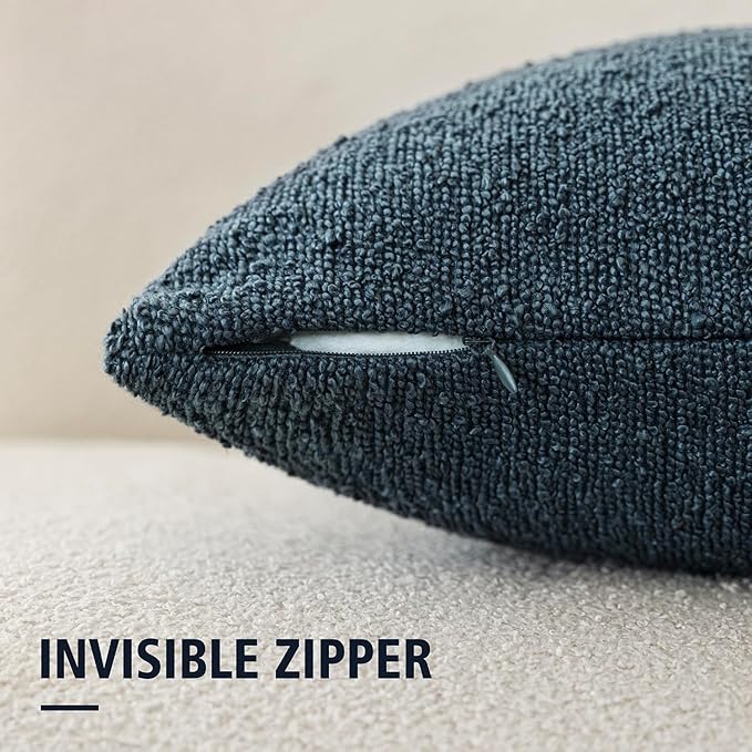 Foindtower Pack of 2 Textured Boucle Throw Pillow Covers Accent Solid Pillow Cases Cozy Soft Decorative Couch Cushion Case for Chair Sofa Bedroom Living Room Home Decor 18x18 Inch Dark Blue