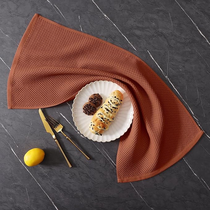 Homaxy 100% Cotton Kitchen Towels and Dishcloths Set, 12 x 12 Inches and 13 x 28 Inches, Set of 12 Bulk Kitchen Towels Set, Ultra Soft Absorbent Dish Cloths for Washing Dishes, Rust