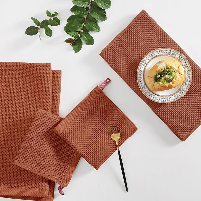 Homaxy 100% Cotton Kitchen Towels and Dishcloths Set, 12 x 12 Inches and 13 x 28 Inches, Set of 10 Bulk Kitchen Towels Set, Ultra Soft Absorbent Dish Cloths for Washing Dishes, Rust