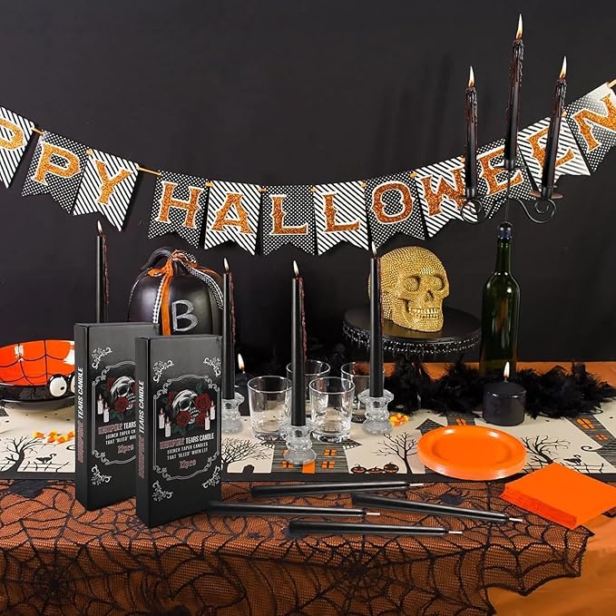 - [Enchanting Aesthetic] Elevate the atmosphere of any event with our striking 10-inch black vampire bleeding taper candles. . With their deep, rich black color and unique dripping wax effect, these candles create a mesmerizing visual that captures attention. Perfect for Halloween parties, they evoke feelings of mystery and intrigue, while also serving as chic decor for more formal settings. The dramatic appearance makes them ideal accents for themed events, making your gatherings memorable and captivating.