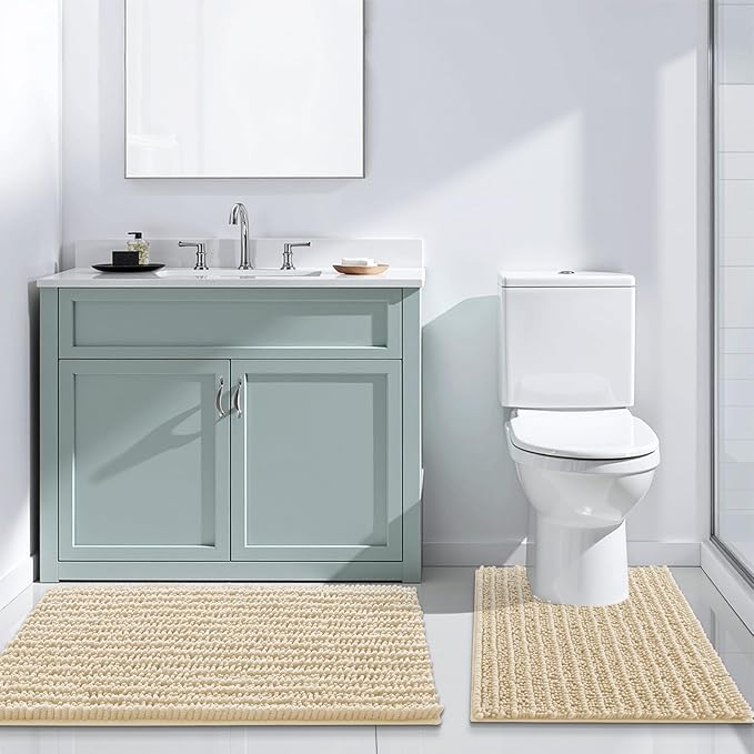 Arotive Luxury Chenille Bathroom Rug Mat, Extra Soft Thick Absorbent Shaggy Bath Rugs, Non-Slip Machine Wash Dry, Plush Bath Mats for Bathroom, Shower and Tub, 30x20, Cream Beige