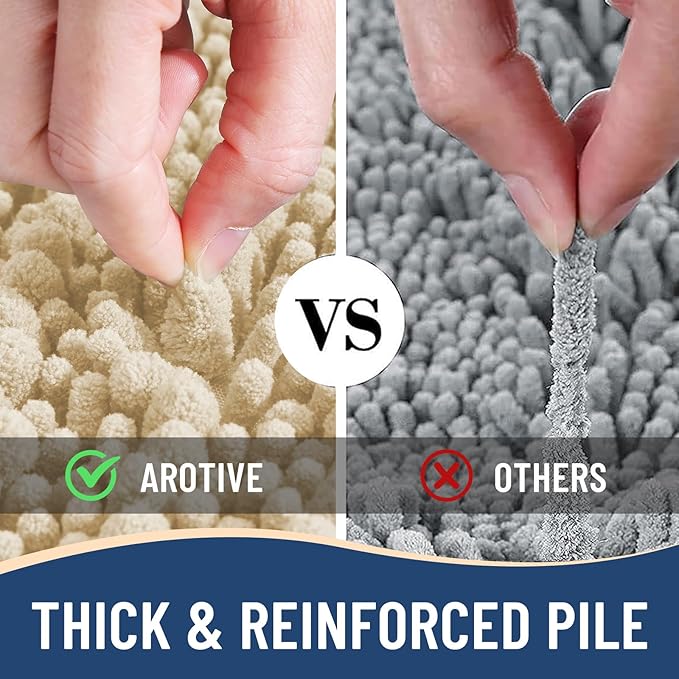 - Anti-Skid Backing: Arotive chenille bathroom rugs feature a non-slip bottom consisting of sturdy mesh PVC material that stops the bath mat from shifting and skidding. The middle layer is 4 mm memory foam, which can let you feel more comfortable when wrapping into the rugs. WARNING: Place bath mat on CLEAN DRY FLAT FLOOR ONLY. Water under bath rug can cause it to slip. Always keep the bottom of bath rug dry