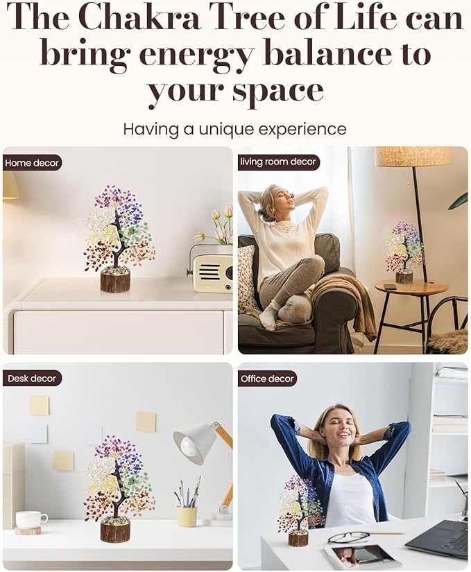 - Chakra Tree of Life: This chakra tree is made of real crystals and healing stones, handmade. The 7 colors represent the 7 energy centers of the human body. The 7 colors have different meanings. Very suitable for spiritual healing and chakra decoration. This is the perfect fusion of women seeking spiritual cleansing or conscious meditation.