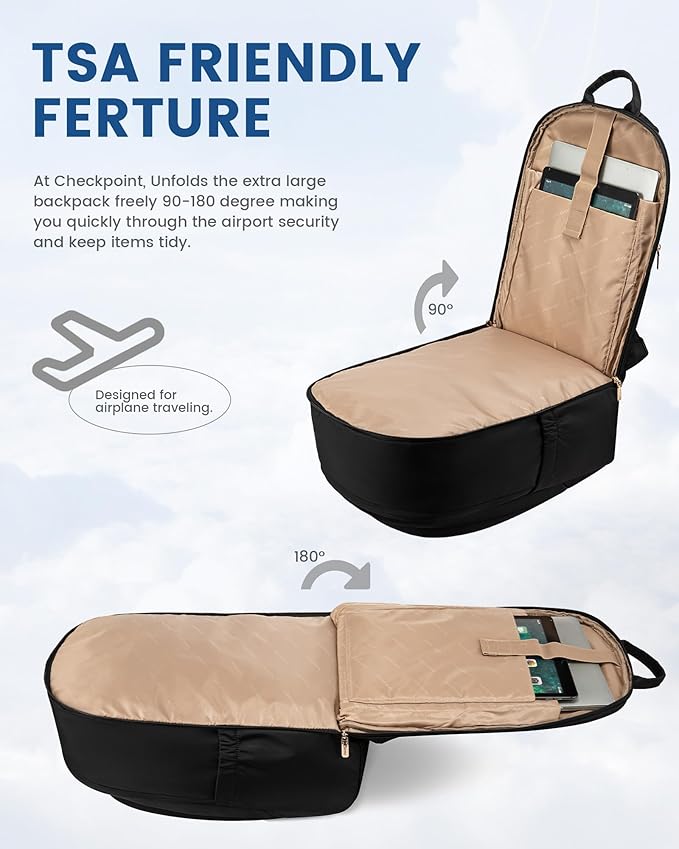 - 【Laptop Protection&180° Wide Open】The backpack features a specialized 180° wide-opening laptop compartment for easy access to your computer and convenient screening. The thick, padded interior provides extra protection to ensure your device is always safe and stable.