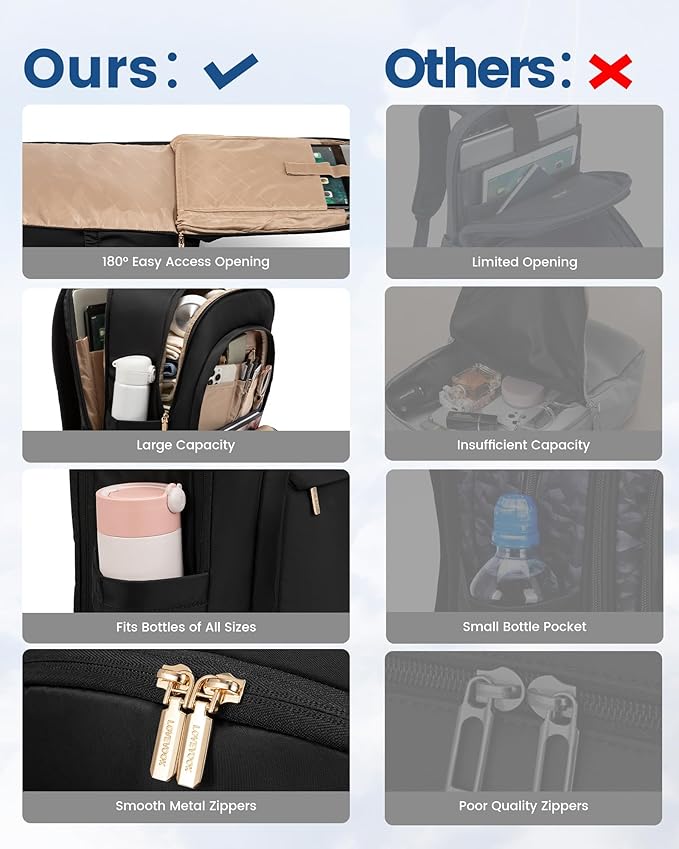 - 【Organized Storage&Easy Access】The backpack has 3 compartments, 10 pockets, 2 pen slots to efficiently organize all your essentials and a large side pocket easily fits a 40 oz water bottle. These pockets allows for quick access to frequently used items, making the women's travel backpack nice for on-the-go organization.