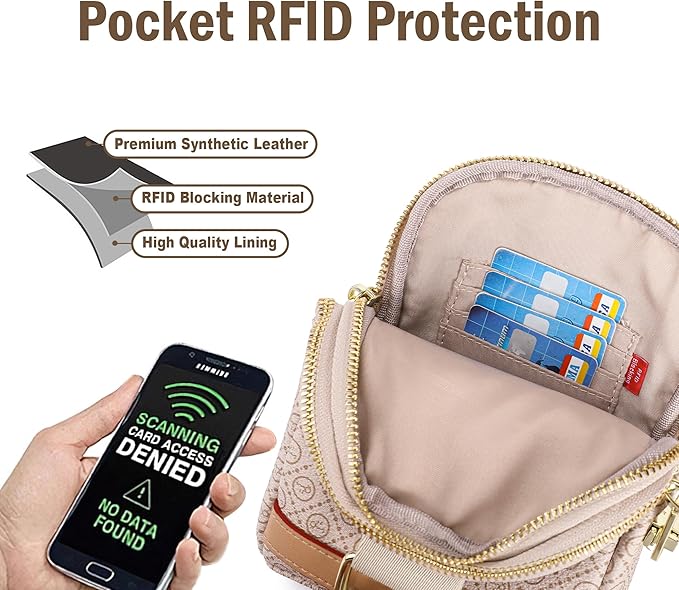 - RFID Blocking:The front zipper pocket of this rfid blocking bag has four card slots built inside, which are made of proprietary shielding materials. These card slots can effectively block RFID signals and protect your personal cards from unauthorized access. You can rest assured that your credit card information will be kept safe when you're traveling or shopping